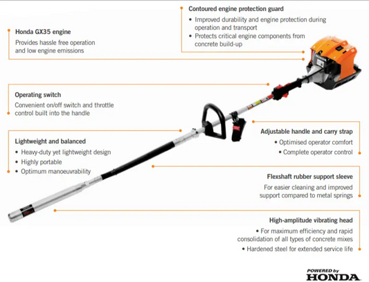 FLEXTOOL PortaVibe Concrete Vibrator FVE44-2G with Engine Guard